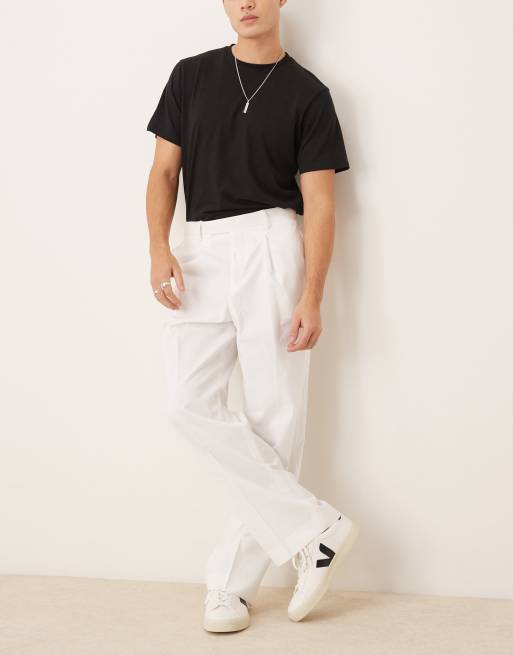 ASOS DESIGN - Elegante og hvide bukser med vide ben og plisseringer foran