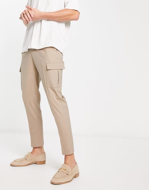 ASOS DESIGN - Elegante og tapered bukser med cargolommer i lys beige