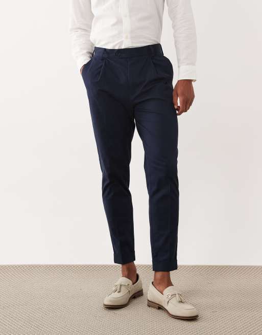 ASOS DESIGN - Elegante og tapered marineblå chinobukser i bomuldsrigt stof med opsmøgede kanter