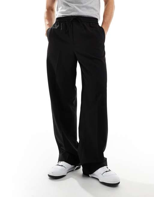 ASOS DESIGN - Elegante pull-on-bukser med vide ben i sort