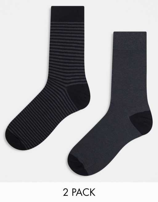 ASOS DESIGN - Elegante sokker med fine ribber i koksgrå med striber