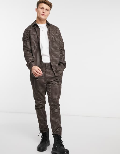 ASOS DESIGN - Elegante, tapered bukser i nålestribet grå