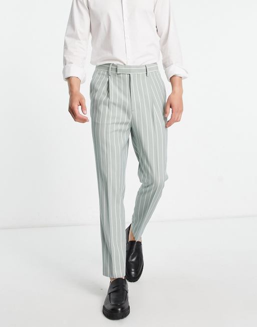 ASOS DESIGN - Elegante tapered bukser med nålestriber i salviegrøn