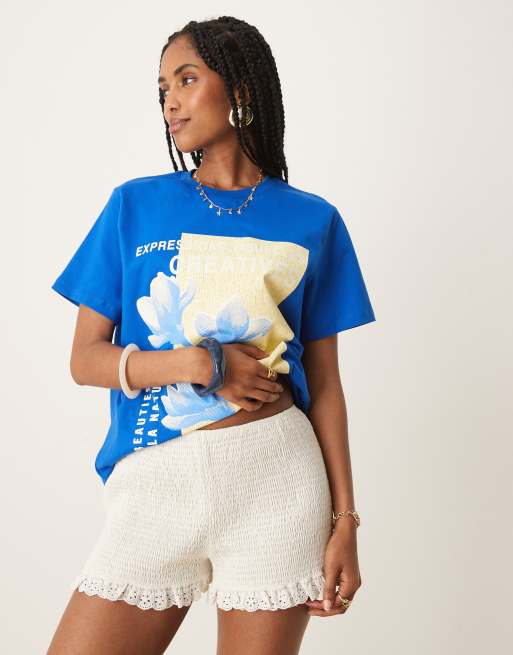 ASOS DESIGN - Elfenbensfarvede mikroshorts med rynker og blondekant