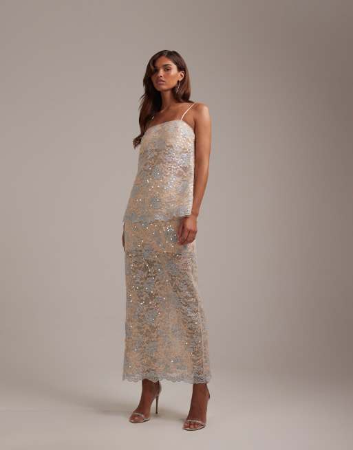 ASOS DESIGN - Elfenbensfarvet nederdel i blondestof med udsmykninger - Del af sæt