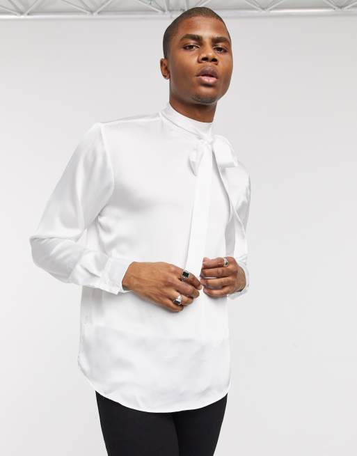ASOS DESIGN - Elfenbensfarvet skjorte i satin med regulær pasform og bindebånd foran