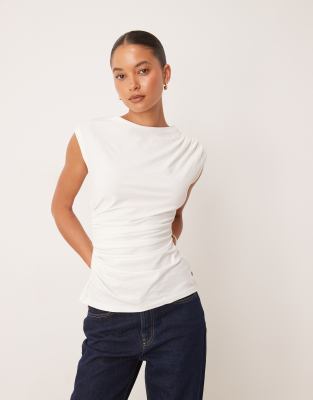ASOS DESIGN - Elfenbenshvid tanktop med rynker i bomuld