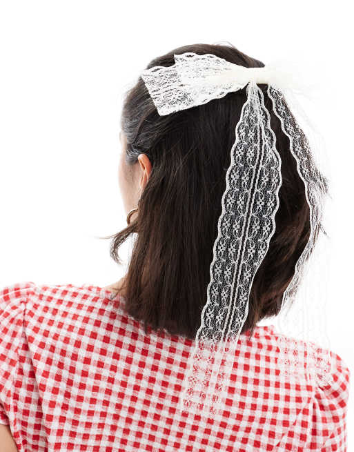 ASOS DESIGN - Elfenbensvid hårklemme med sløjfe med blondedetaljer