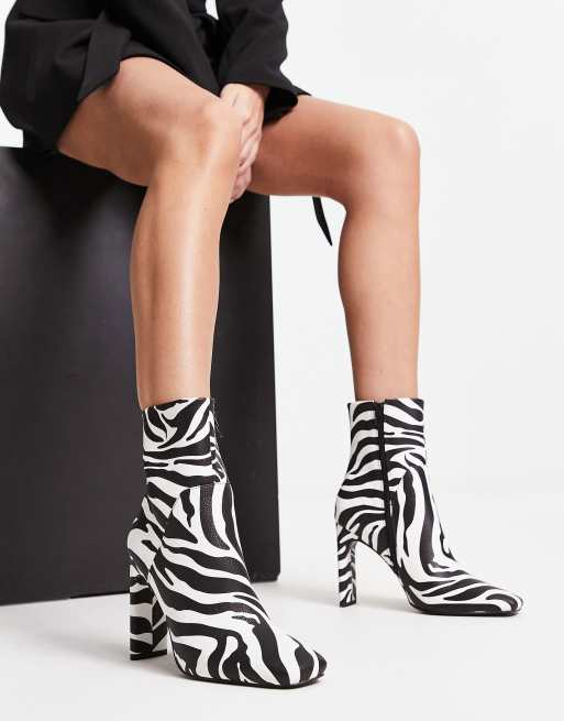 ASOS DESIGN - Embassy - Ankelstøvler med hæl i zebraprint
