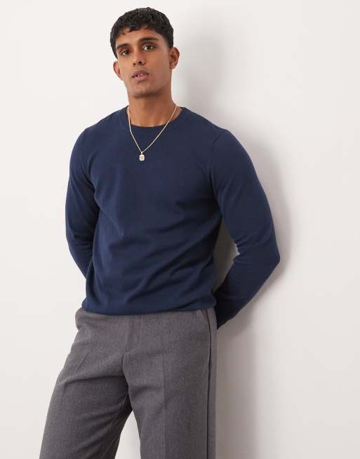 ASOS DESIGN - Essential - Strikket trøje i marineblå