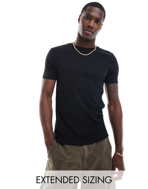 ASOS DESIGN - Essential - Tætsiddende ribstrikket t-shirt i sort