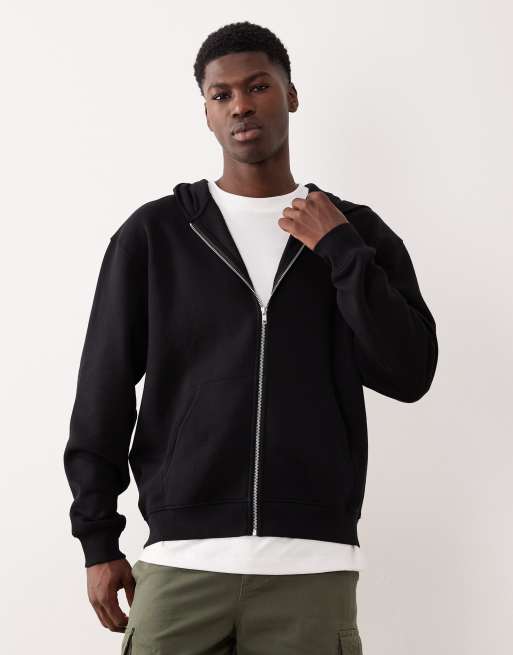 ASOS DESIGN - Essentials - Afslappet sort hættetrøje med lynlås