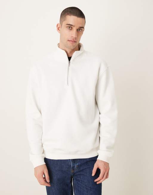 ASOS DESIGN - Essentials - Beige afslappet trøje med kvart lynlås