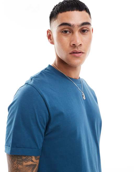 ASOS DESIGN - Essentials - Blå T-shirt med rund hals og oprullede ærmer