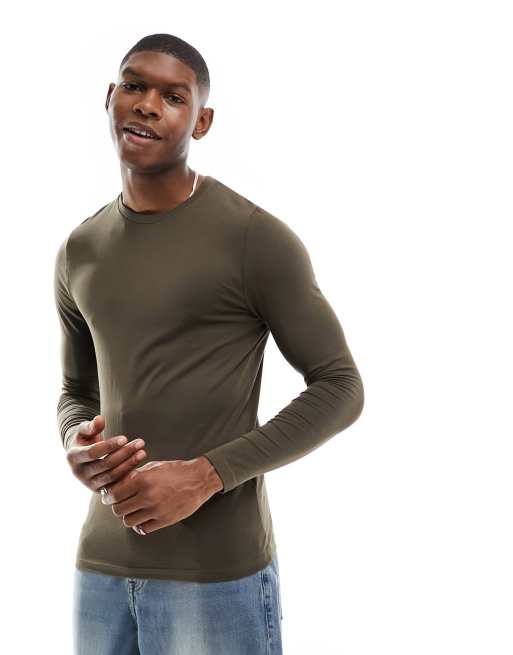 ASOS DESIGN - Essentials - Brune og tætsiddende T-shirt med ribber og lange ærmer