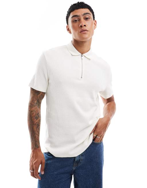 ASOS DESIGN - Essentials - Cremehvid polo med lynlås og vaffeltekstur