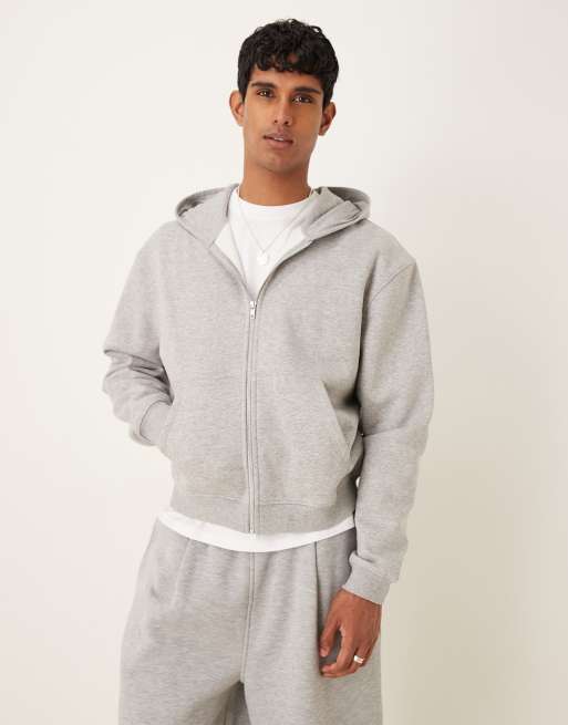 ASOS DESIGN - Essentials - Gråmeleret afslappet hættetrøje med lynlås og firkantet pasform
