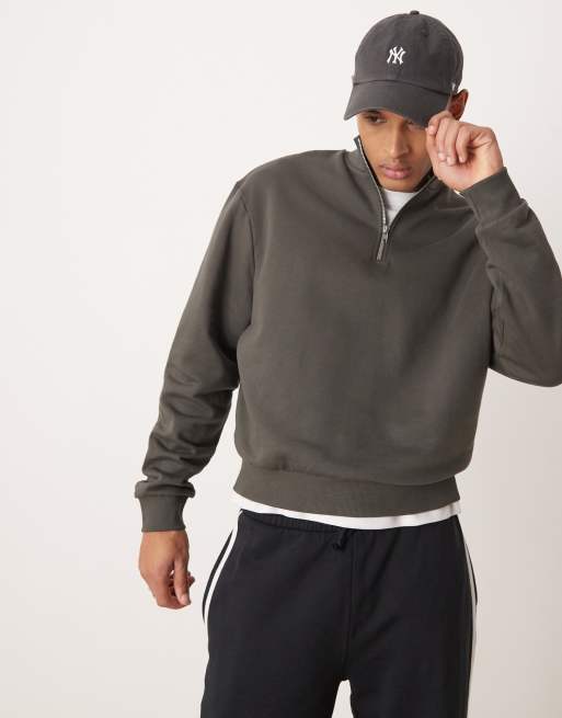 ASOS DESIGN - Essentials - Kakigrøn, oversized og firkantet sweatshirt med kvart lynlås