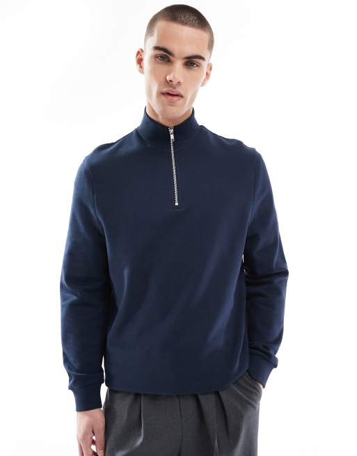 ASOS DESIGN - Essentials - Marineblå sweatshirt med kort lynlås