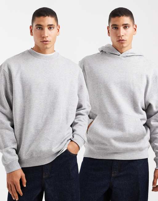 ASOS DESIGN - Essentials - Pakke med gråmeleret hættetrøje og sweatshirt med afslappet pasform