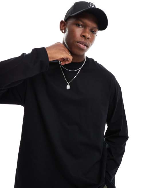 ASOS DESIGN - Essentials - Sort oversized T-shirt med lange ærmer