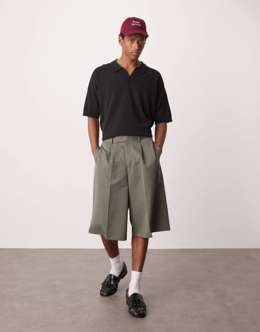 ASOS DESIGN - Falmet grønne elegante oversized bermudashorts med plisseringer foran