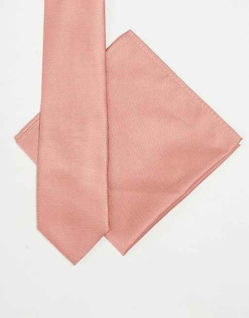 ASOS DESIGN - Ferskenfarvet sæt med slips og lommetørklæde