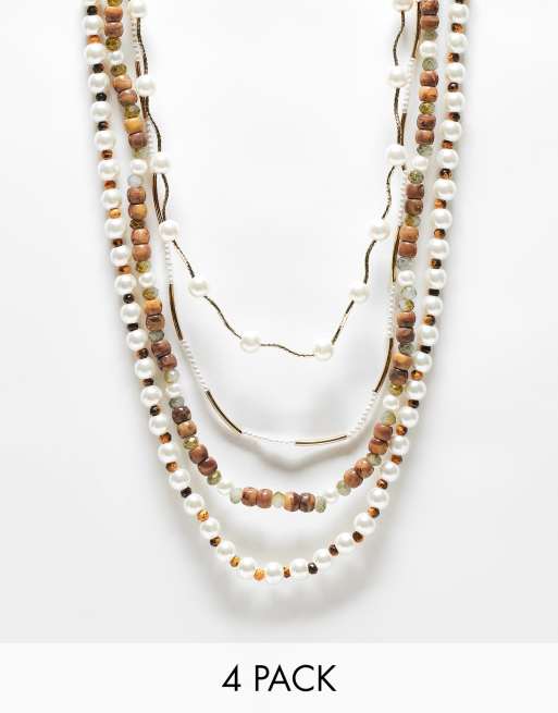 ASOS DESIGN - Festival - Pakke med 4 multifarvede halskæder med perler og imiterede perler