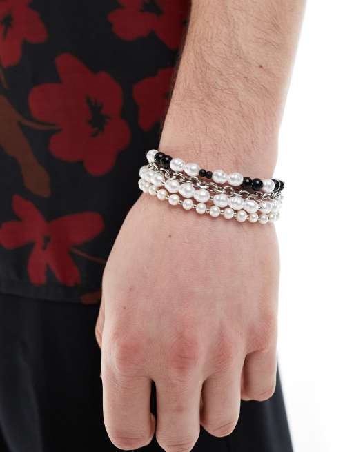 ASOS DESIGN - Festival - Pakke med 4 sølvfarvede armbånd med kæde og imiterede perler