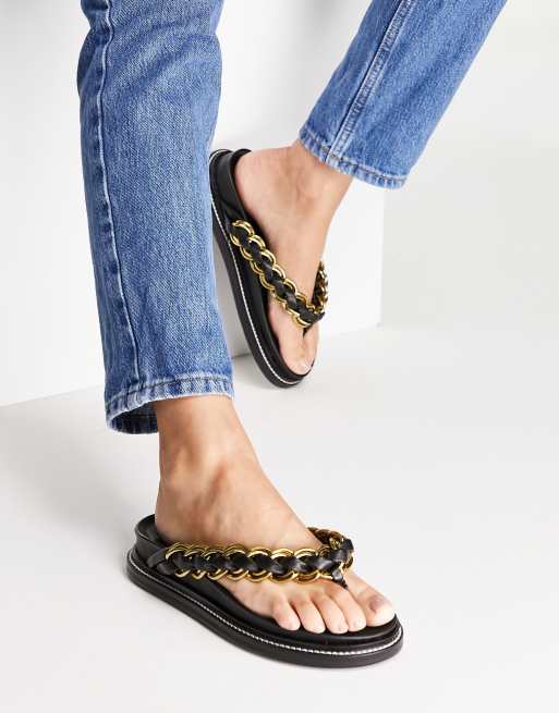 ASOS DESIGN - Festive - Flade sandaler med kæde-design i sort premium-læder