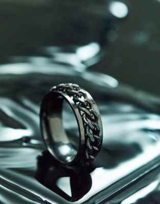 ASOS DESIGN - Fidget - Ring med kæde i skinnende sort rustfrit stål
