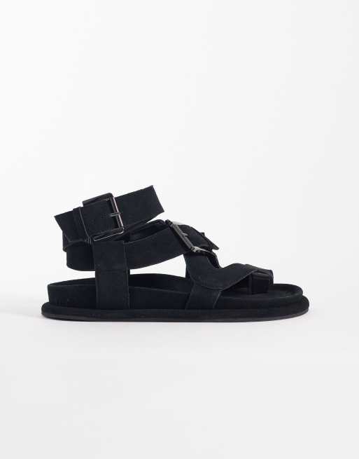 ASOS DESIGN - Finley - Premium - Sorte sandaler med stropper og sål i ruskind