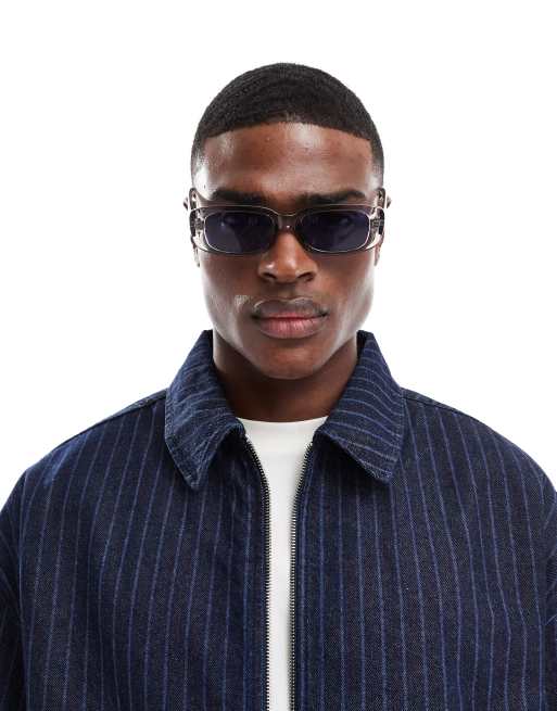 ASOS DESIGN - Firkantede solbriller med blå glas og gråt stel