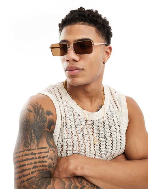 ASOS DESIGN - Firkantede solbriller med stangdetalje i guldfarve