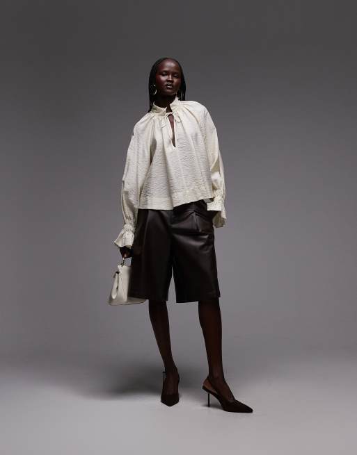 ASOS DESIGN - Flagrende bluse med bindebånd i halsen og manchetter
