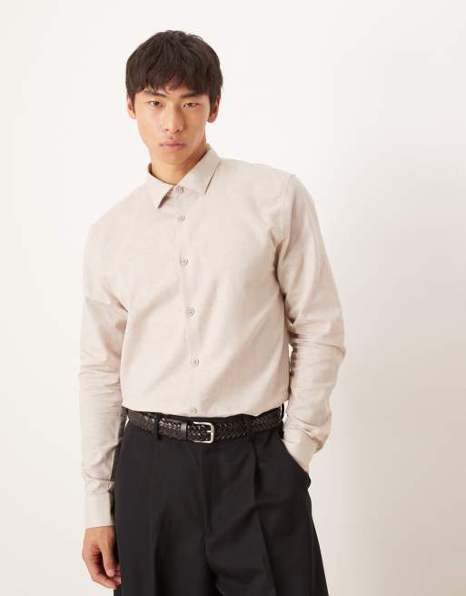 ASOS DESIGN - Formel beige skjorte i hørblanding med regular fit-pasform