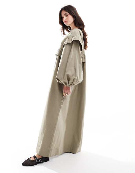 ASOS DESIGN - Formløs smock-midikjole med flæser og oversized ærmer i beige