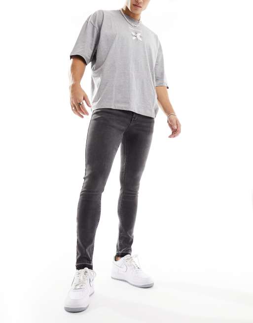 ASOS DESIGN - Forvaskede sorte spray on-jeans med power-stretch og flossede kanter