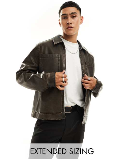 ASOS DESIGN - Forvasket brun harrington-jakke i imiteret læder