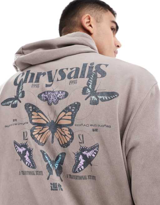 ASOS DESIGN - Forvasket brun og oversized hættetrøje med print bagpå