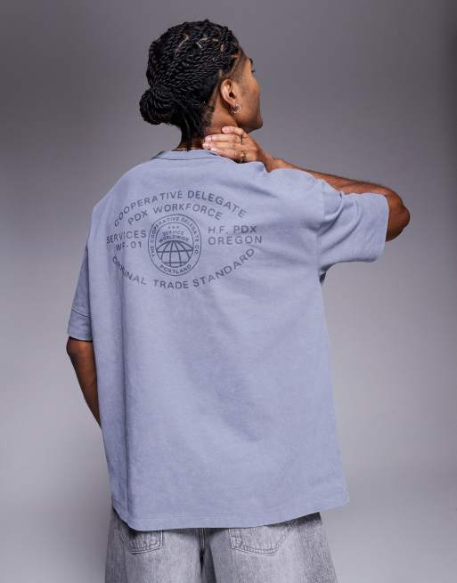 ASOS DESIGN - Forvasket grå oversized T-shirt i kraftigt stof med tekstgrafik og sømdetaljer