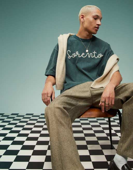 ASOS DESIGN - Forvasket grøn oversized firkantet T-shirt i kraftigt stof med brystprint