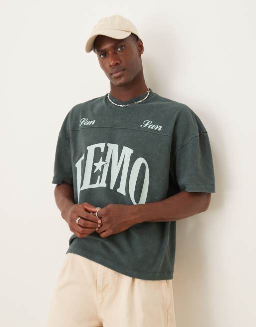 ASOS DESIGN - Forvasket grøn oversized T-shirt i kraftigt stof med V-hals og sømdetaljer og bygrafik