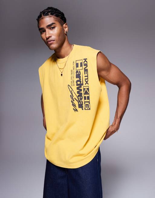 ASOS DESIGN - Forvasket gul oversized tanktop i kraftigt stof med tekstgrafik