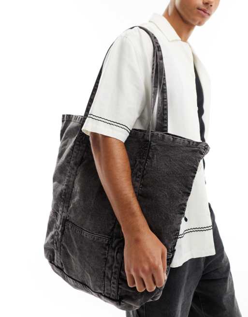 ASOS DESIGN - Forvasket sort tote-taske med vinger