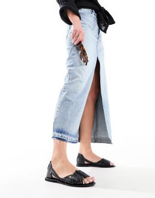 ASOS DESIGN - Francis - Sorte flettede flade sandaler i læder