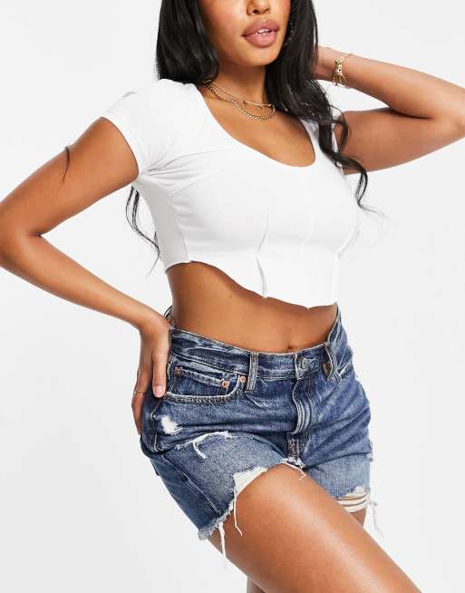 ASOS DESIGN - Fuller Bust - Ribstrikket korset-T-shirt med sømdetaljer i hvid