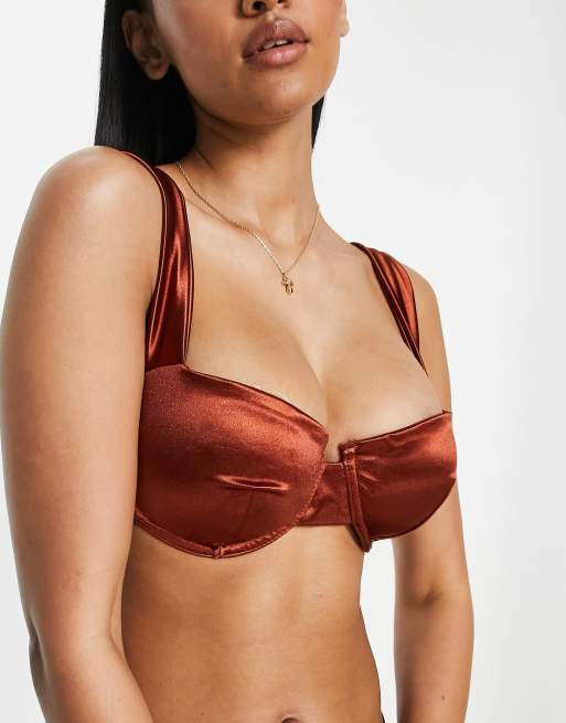 ASOS DESIGN - Fuller Bust - Skinnende bikinitop med bøjle i brændt brun