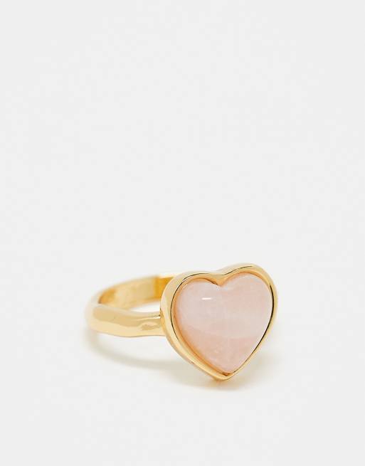 ASOS DESIGN - Gaveæske med ring med 14 k guldbelægning og smeltet hjertedesign med halvædel rosakvarts-sten