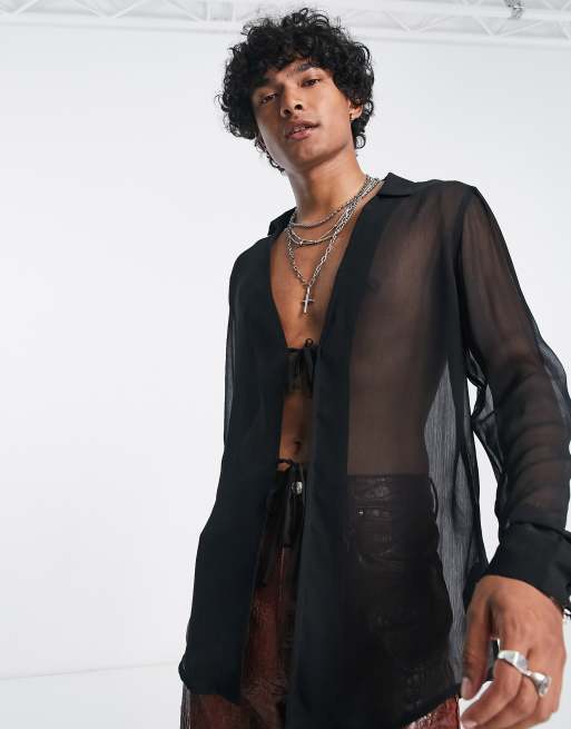 ASOS DESIGN - Gennemsigtig longline-skjorte med bindebånd foran i sort